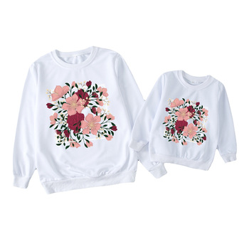 Camisa familiar personalizada a juego de otoño sudadera con estampado de flores grandes ropa de mamá, papá y yo con logotipo estampado privado
