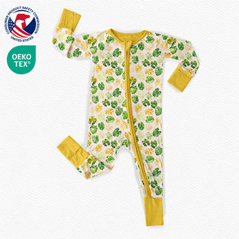 Venta al por mayor de pijamas de bambú personalizados con cremallera OEKO-Tex 2 piezas Pjs Impresión digital activa bebé OEM ODM ropa de bambú para bebé durmiente