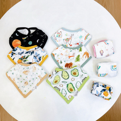 OEM personalizado 95% bambú 5% Spandex Baberos de bebé Impresión digital impermeable Terry algodón Cierre de botón Baberos de alimentación