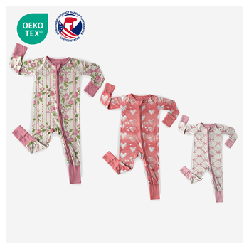 จั๊มสูทมีซิปยาวมีซิปผ้าสแปนเด็กซ์5% ไผ่95% สั่งพิมพ์ลายสำหรับเด็กทารกชุดติดกันมีซิปมีซิป